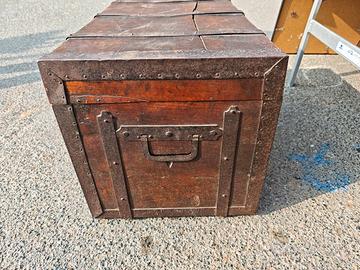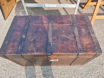 Vecchio baule militare di fine 800. Baule usato con visibili segni del tempo/d'usura, privo di serratura. Misura 70 cm x 40 cm x 40 cm. Preferibile il ritiro in negozio, per eventuale spedizione o informazioni in merito possibile contatto telefonico al 3496282557.
