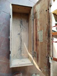 Vendo cassa baule portamunizioni o bombe a mano tedesco abbandonato a Vignola mo. Con tutte le effige ed il lucchetto intonso, mancanti alcuni pezzi, probabilmente dovuto all apertura forzosa dello stesso.. Ottime condizioni con alcuni buchi di tarli Dell epoca