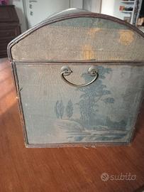 Bauletto anni 70 con rivestimento in tessuto tipo seta stile orientale. Vintage design