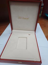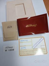 Bauletto per accendino Dupont, con corredo completo di garanzia, libretto di istruzione e manutenzione, contenitore in panno antiossidante e referenza.