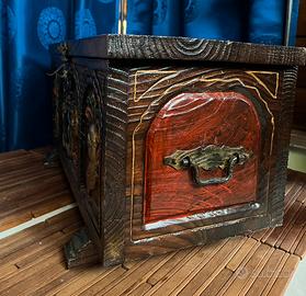 Bellissimo bauletto in legno massello intagliato a mano antico. Misure 50 x 27 x 26 altezza