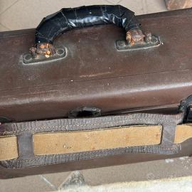 Vendo vecchia valigia/bauletto rigido d'epoca, ideale per amanti del vintage e collezionisti. L'oggetto presenta una bellissima patina del tempo, perfetta come elemento d'arredo, portaoggetti o per allestimento vetrine in stile retrò. L’interno é da pulire ma si presenta in stato discreto. Sempre usata come elemento di arredo. Prezzo trattabile. Non é inclusa la chiave (che non riesco a trovare purtroppo).