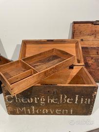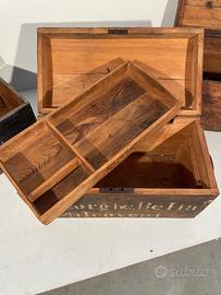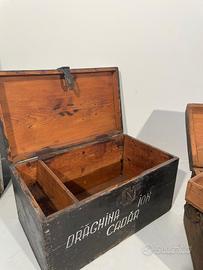 Bauli antichi da calzolaio in legno Misure: 32x58 cm, H: 32 cm Prezzo: 50€ l’uno
