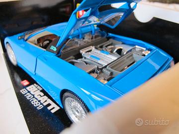 Modellino BBURAGO della BUGATTI EB 110 del 1991. Auto particolarmente apprezzata dagli amanti del marchio dei primi anni dell'automobilismo Italiano.