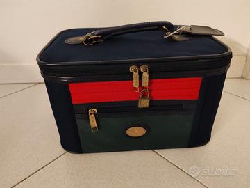 Beauty case rigido in ottime condizioni, vintage anni 80. Specchio interno, lucchetto con chiave e porta etichetta, senza tracolla. Rivestimento in tessuto. Ulteriore tasca esterna.