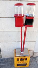 Uno dei 2 distributori, quello con la ghiera nera, eroga gadgets vari tra cui palline rimbalzine ed altro tipo di gadgets, l'altro distributore eroga gomme, pistacchi, noccioline, caramelle ecc ....