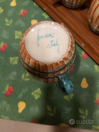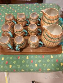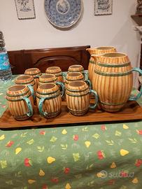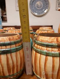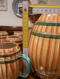 Bellissimo originale set 9 boccali birra/vino + 2 caraffe in ceramica Pucci Umbertide a forma di botti del 1950. Firmato e numerato alla base 310 made in Italy. Condizioni eccellenti perché mai usato ma solo usato per esposizione