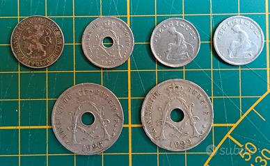 Belgio lotto 6 monete divisionali periodo 1900-1929 versioni lingua francese e fiamminga condizioni come da foto