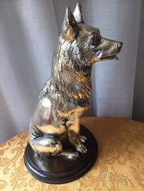 Bella statua in fusione ottone bronzato,rappresentante il nostro amico cane lupo,vintage ,molto pesante Altezza cm.31 Diametro base cm.18 € 35 Possibile spedizione
