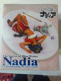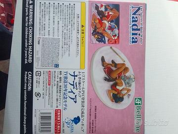 La casa giapponese Bellfine ha inaugurato la sua linea di statue in scala 1/7 con il personaggio di Nadia, tratto da una serie molto conosciuta in Italia: Nadia il Mistero della Pietra Azzurra (Fushigi no umi no Nadia). La statua realizzata in PVC e ABS misura un’altezza complessiva di 15 cm. Elegantemente scolpita da Miki Ousaka (Cherry Blossom) e dipinta da Emi Hoshina è tratta dalla copertina del terzo volume (Vocal Twin Best) della trilogia di CD chiamati “ETERNAL NADIA series” con le musiche e canzoni della serie, in cui è possibile vedere Nadia insieme al leoncino King in un momento di totale relax. Nella scatola deluxe illustrta a colori con finestra è inclusa la mini figure del leoncino King oltre a una bacchetta modellata, il cappello e una base. Prodotto nuovo, sigillato nella sua scatola a finestra perfetta.
