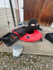 Vendo bellyboat usato pochissimo, condizioni perfette. Vendo insieme a ecoscandaglio garmin striker 4 e attacco per bellyboat, portacanne nuovo rapala e kit riparazione. Regalo gilet buovo della dechatlon. Unica pecca manca la pompa per ginfiarlo.