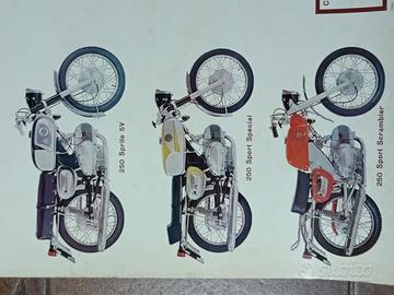 Calendario del 1969 della BENELLI con le immagini di tutte le moto in produzione: Bobo, Gentlemen, Gentlemen Fak, Export 3VK, 250 Sprite 5V , 250 Sport Special, 250 Sport Scrambler, City bike, Motorella, Mini Bike, Sprint 3V, Sprint 4V, America, Trial, 125 Leoncino, 125 Leoncino Scrambler, 650 Bicilindrica. È un calendario/poster originale e misura cm 49 x 74. Nella parte bassa è presente una striscia con i giorni del mese di Gennaio, dopodiché andava strappato e sotto vi è quello di Febbraio e così via. Ovviamente il calendario è integro e completo di tutti i mesi. Spedisco solo con Poste Italiane, no Locker.