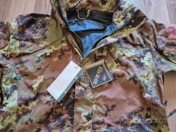 Set GORE TEX giacca parka e pantalone impermeabile mimetica vegetata esercito italiano originale BERETTA condizione NUOVO con cartellino. Vestiario militare impermeabile anche per softair