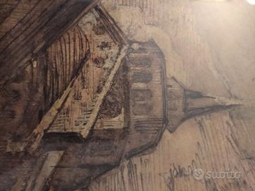 Disegno a china degli anni 50 molto ben conservato. Firmato Volpi. Bergamo, Città Alta.