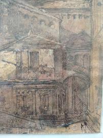 Bergamo. Città Alta. Disegno a china . Firma Volpi