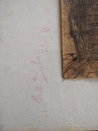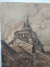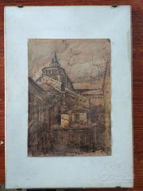 Stupendo particolare di Città Alta a Bergamo. Firmato "Volpi". 21x29 cm di opera.