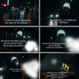 A voi un ottimo investimento riguardo la vostra sicurezza personale ! Visibili ad oltre 200m di distanza di notte ! Immaginate un runner corre sul marciapiede buio, in lontananza si avvicinano i fari di un’auto ! “…ma ora puoi contare su qualcosa che brilla al momento giusto! ” Il nuovo berretto catarifrangente NUDE ‘N CRUDE. Design urbano, sicurezza estrema! Per chi va a scuola, per chi corre, per chi pedala. Anche senza fanale, si fa vedere! Si attiva con la luce. Si nota dove conta. E salva la pelle. NUDE ‘N CRUDE. Sii selvaggio. Ma visibile! NUDE ‘N CRUDE – Visti per resistere. Il berretto è nuovo, mai usato, solo tolto dall'imballo per ispezionare il prodotto.