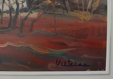 PIERO BERTACCO. (1924-1984) splendido olio su tela cm. 40x50 + cornice cm. 56x66 firmato in basso a dx ottime condizioni di conservazione Sin da giovanissimo si è dedicato alla pittura; frequenta l’Accademia di Belle Arti dove ha per maestri Guido Cadorin e Bepi Galletti. La sua prima mostra personale viene allestita alla Galleria San Vidal di Venezia. Nel 1953, per studio, si trasferisce a Milano dove, fra gli altri, frequenta assiduamente Mario Sironi e Spartaco Balestrieri. Sempre nel 1953 espone a Milano alla Saletta del Disegno. Rientrato nel Veneto nel 1957, lavora intensamente e cerca anche nella scultura una sua nuova necessità espressiva rimanendo comunque sempre legato alla tradizione figurativa veneta (paesaggi-nature morte). Espone anche a livello internazionale. Nel 1961 su invito del governo sovietico espone a Mosca ad una rassegna della pittura italiana contemporanea. Nel 1962 e 1963 la American Federationof Arts gli organizza numerose mostre nelle principali città degli Stati Uniti. Nel 1964 partecipa con 5 opere alla collettiva internazionale di Ginevra. Nel 1967 ad Amburgo partecipa ad una mostra ove ottiene notevole successo; il Museo della città ne acquista un suo dipinto. Nel 2024 il “MUB Museo dellaBonifica” di San Donà di Piave ne ha celebrato il centenario della nascita. È considerato un artista che ha influenzato altri pittori con una pittura di impronta post-impressionista. SUL PREZZO POSSIBILE CORRETTA TRATTATIVA