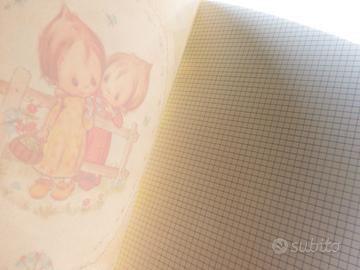 * RISPONDO SOLO ad utenti Verificati e con ANNUNCI ATTIVI.* BETSEY CLARK Vintage 6 MAXI QUADERNI 1974 NO ‘CARTOLERIA’ CONTEMPORANEA! NO VINTAGE USATO! N.B. QUESTI OGGETTI non hanno NULLA a che vedere con CARTOLAME ATTUALE che si può trovare copiosamente nei negozi o sul web, disponibile in migliaia e migliaia di pezzi, tutti banalmente uguali e DI NESSUN VALORE COLLEZIONISTICO, VINTAGE e QUALITATIVO! Qui si parla di oggetti DA COLLEZIONE NUOVI&COMPLETI, ormai INTROVABILI, ma AUTENTICO VINTAGE ANNI ’70-‘80, Marchiati HALLMARK CARDS INC e VIRCA. VERO – e ormai perduto - MADE IN ITALY. Rara SERIE ‘PATCHWORK’ composta da 6 diversi e deliziosi MAXI QUADERNI di BETSEY CLARK, autentico Vintage fine anni Settanta. NUOVI DA NEGOZIO, in condizioni iNCREDIBILI: NESSUNA macchia di umidità, sgualciture... PERFETTI! Questa serie, è caratterizzata da una CORNICE PATCHWORK fatta di ‘pezze’ di vari colori a contorno dell’immagine principale. Splendidi ritratti di bambine E PICCOLI BAMBINI che si abbracciano, che giocano, che studiano... MISURA FORMATO: A4, MAXI o QUADERNONE: cm. 31 x 21. spessore: sottile 18 fogli pagine: quadretti piccoli. Disegni e colori MERAVIGLIOSI, come non si producono più da decenni nel mondo della 'cartoleria', oggi ormai realmente squallido e desolante. Il più autentico e delicato Vintage fine anni ’70 con la possibilità di acquistare la UNA SERIE DA SEI PEZZI, in una sola transazione. - CONDIZIONI DA FAVOLA! Incredibili le condizioni favolose di questi quaderni, considerando anche la loro età: 40 anni e come appena usciti dalla fabbrica. Di un oggetto analogo attuale, CARTACEO, fra 40 anni, non resterà che un mucchietto di polvere. Nuovi, completi, mai usati e perfettamente PULITI. I QUADERNI NON PRESENTANO LA MINIMA IMPERFEZIONE. UNICO DIFETTO: I punti metallici hanno LIEVI TRACCE DI RUGGINE ALL’ESTERNO e RUGGINE ALL’INTERNO. © 1972 - 1974 HALLMARK CARDS INC. - STAMPATI IN ITALIA da VIRCA. - Spedizione con POSTE DELIVERY STANDARD.