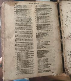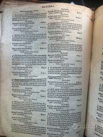 Vendo rarissima Bibbia stampata a Londra nel 1589 da Christopher Barker, tipografo ufficiale della regina Elisabetta I. Volume completo del frontespizio originale e arricchito da annotazioni genealogiche manoscritte datate tra il 1700 e il 1748.
