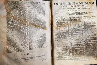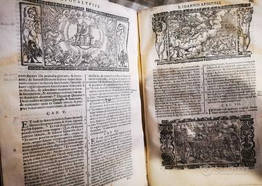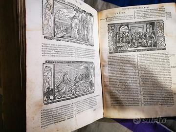 Come da foto, bibbia antica. Fine 500. Libro antico. Manca il frontespizio, foto indicativa. Più di 100 incisioni xilografie. Vangeli, apocalisse.. La Vulgata è una traduzione in latino della Bibbia dall'antica versione greca ed ebraica, realizzata alla fine del IV secolo da San Girolamo.