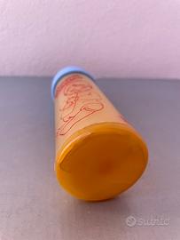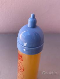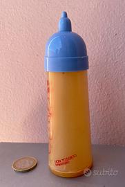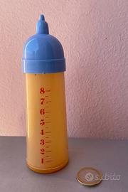 Biberon Magico, classico giocattolo vintage per bambole, originale anni '70 Accessorio universale, spesso acquistato separatamente per arricchire il corredo delle bambole più famose dell’epoca Costruito con un doppio rivestimento, dava l'illusione ottica che la bambola stesse bevendo davvero, poiché il finto latte all'interno sembrava scomparire magicamente quando il biberon veniva inclinato o girato, per poi riapparire quando riposizionato in verticale Liquido interno evaporato con il passare degli anni (difetto comune negli originali 70s), ideale per esposizione o completamento bambole vintage Serigrafia originale di colore rosso, ben conservata e non sbiadita Struttura integra, qualche segno sul fondo e piccolissima imperfezione sul tappo (foto) Dimensioni: 14 cm x 4 cm Colore Tappo: azzurro Materiale: Plastica Marchio probabile (non dichiarato sul prodotto): Ditta Co-Ma (Made in Italy)