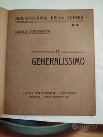 Volumetto n.2 LA BIBLIOTECHINA DELLA GUERRA IL GENERALISSIMO Cent.30 Editore Luigi Trevisini Corso Romana 100 Milano pagine 40 tutto integro con normali segni di usura del tempo e lievi bruniture sul dorso. Se interessati richiedere altre foto.