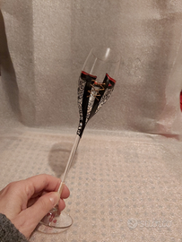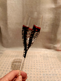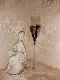Delizioso bicchiere FLUTE in vetro, dipinto a mano, ispirato all'alta moda, alto cm 30. Inusuale e bellissimo.