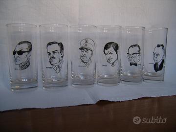 6 bicchieri da bibita in vetro con ritratti di uomini politici tra loro contemporanei, a 60,00.