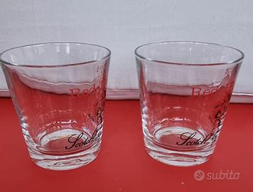 bicchieri da whisky vintage di "Red Hackle Scotch", con il nome del marchio e l'immagine di una piuma