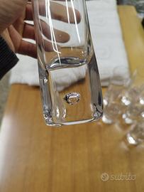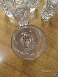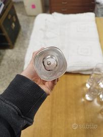 Bicchieri in cristallo, mai usati, degli anni 70, in perfette condizioni. Possibilità di venderne fino a 17 pezzi a 9€ l'uno. Raffinati e vintage, questi bicchieri hanno la particolarità della goccia sul fondo del bicchiere, che li rende unici.