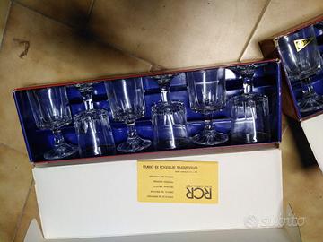 22 bicchieri di cristallo vintage made in Italy in due confezioni, nuovi ancora con etichette