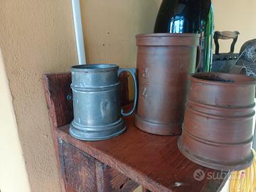 vendo 3 bicchieri antichi e originali 2 in rame e 1 in peltro