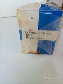 Per short, caffè, whisky, ecc. Bicchieri nuovi. Conservati per anni nella scatola originale che, come da foto, è visibilmente sporca e invecchiata. Ho dovuto tagliare la plastica protettiva poiché, rotta e scura, impediva un risultato fotografico accettabile.