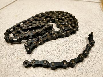 nuova ! e' un fondo di magazzino anni 50/60 circa , questa catena a passo "humber' lunga cm.136 ce' anche uno spezzone nuovo da cm 13 x completare bici pista di quegli anni .