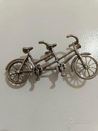 Bici tandem miniatura argento vintage da col