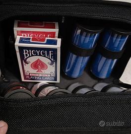 vendo set da gioco poker, cofanetto "borsello" contenente carte da gioco ancora confezionate + Fisches mai usato !!