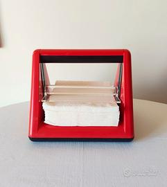 Portatovaglioli Biesse vintage anni '70/'80, design by Pino Spagnolo, caratterizzato da un vivace colore rosso L'oggetto non è solo bello da vedere, ma anche funzionale: la barra centrale trasparente funge da peso, mantenendo i tovaglioli ordinati ed evitando che volino via (dunque perfetto anche per pranzi all'aperto) Made in Italy Dimensioni: 18 altezza x 21 larghezza base Un tocco di colore e design italiano per la tua cucina o per un collezionista di oggetti vintage! #modernariato #designer #oggettistica #collezione #collezionismo #collezionisti #retro #cucina #servizio #tavola #colorato #arredamento #casa #pop