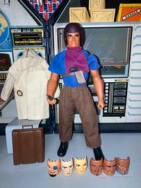 Big Jim Agente Segreto 004 ( 5101 ) 1981 , produzione per mercato europeo, tutto Originale, versione 6 maschere e con trench tasche porta maschere , completo, si presenta come in foto e senza colature sotto ascelle. 109 euro…per…inf…con…