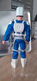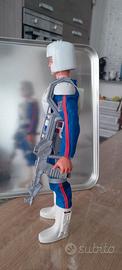 Action figure di Big Jim della serie Spazio. - Completo di accessori. - Dettagli fedeli al personaggio. Big Jim Commando come da foto in discrete condizioni fucile pistola cinturone pettorina stivali tuta e casco coltello purtroppo e nero