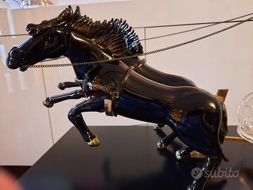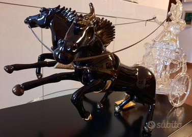 Ciascun cavallo è stato realizzato in vetro pieno di colore nero con inserti in foglia d'oro e pesa kg 2,5.