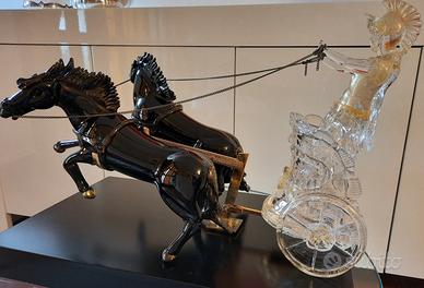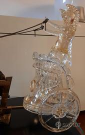 Cedo importante e bellissimo lavoro in vetro di Murano vintage originale degli anni 50, si tratta di un guerriero romano sopra una biga trainata da due cavalli.