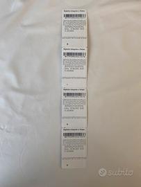 Vendo 4 biglietti emessi da Atac Azienda trasporti romana in occasione del 39° compleanno del capitano della Roma Francesco Totti anno 2015 in edizione limitata, nuovi, non olbiterati, ancora attaccati insieme e senza alcun difetto o usura, conservati dal primo giorno in involucro di plastica. Quell’uscita fu in edizione limitata, prima ed ultima volta che l’immagine del capitano è stata utilizzata in suo onore. Sono passati 10 anni dall’emissione e sono sempre più rari da reperire, se non a prezzi più alti rispetto a quello proposto in questo annuncio…. Solo per veri collezionisti ed amanti di questo immenso campione! Da non perdere!
