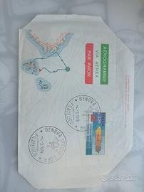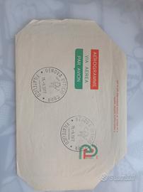 Aerogramma "Dirigibile Italia" (centrale):Questo aerogramma è stato emesso per commemorare il 50° anniversario del volo al Polo Nord del dirigibileItalia, il 4 marzo 1978. Presenta un annullo speciale di Genova e ha un valore stampato di 200 lire, sufficiente per l'invio come aerogramma senza integrazioni tariffarie all'epoca.