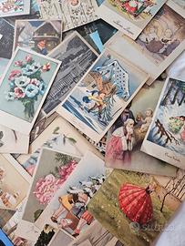 Cartoline d'epoca e biglietti di auguri vintage. Collezionismo:Rappresentano un pezzo di storia della corrispondenza e della grafica del passato. Temi:Molte raffigurano scene natalizie, paesaggi o immagini sacre. Dettagli:Alcune presentano francobolli e messaggi scritti a mano sul retro. Sono più meno sui 80 pezzi Vendo tutto in blocco, le foto sono parte integrante della descrizione