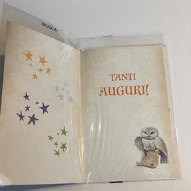 Tre diversi biglietti augurali di Harry Potter con busta, nuovi tenuti da collezione, sono ancora tutti nella loro busta protettiva di plastica.