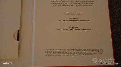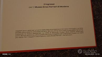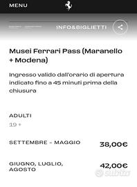 Vendo 2 biglietti per museo Ferrari Maranello + 2 Biglietti museo Enzo Ferrari Modena, in confanetto. Valore come da foto biglietteria 76€. Io vendo a 55€. Consegna solo a mano. Prezzo non trattabile.