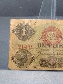 Biglietto da Piccolo taglio da 1 Lira della ( Banca Nazionale nel Regno d'Italia). Si presenta ( RIGOROSAMENTE AUTENTICA e al NATURALE 100x100).