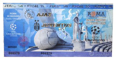 Biglietto vintage da collezione Finale Coppa dei Campioni del 1996 AJAX - JUVENTUS, (integro madre/figlia) incorniciato con parcheggio auto e ingresso staff.