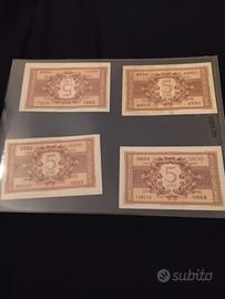 vendo biglietti di stato a corso legale fior di stampa FDS da Lire 5, BIGLIETTO DI STATO ATENA LUOGOTENENZA PRIMA SERIE 23 11 1944 . conservati bene senza macchie o aloni o pieghe come da foto. si può acquistare l intero lotto o singolarmente. ovviamente se si decide di acquistare l intero lotto ci si può mettere d accordo per un prezzo di riguardo. sennò il prezzo e di 90 euro a pezzo
